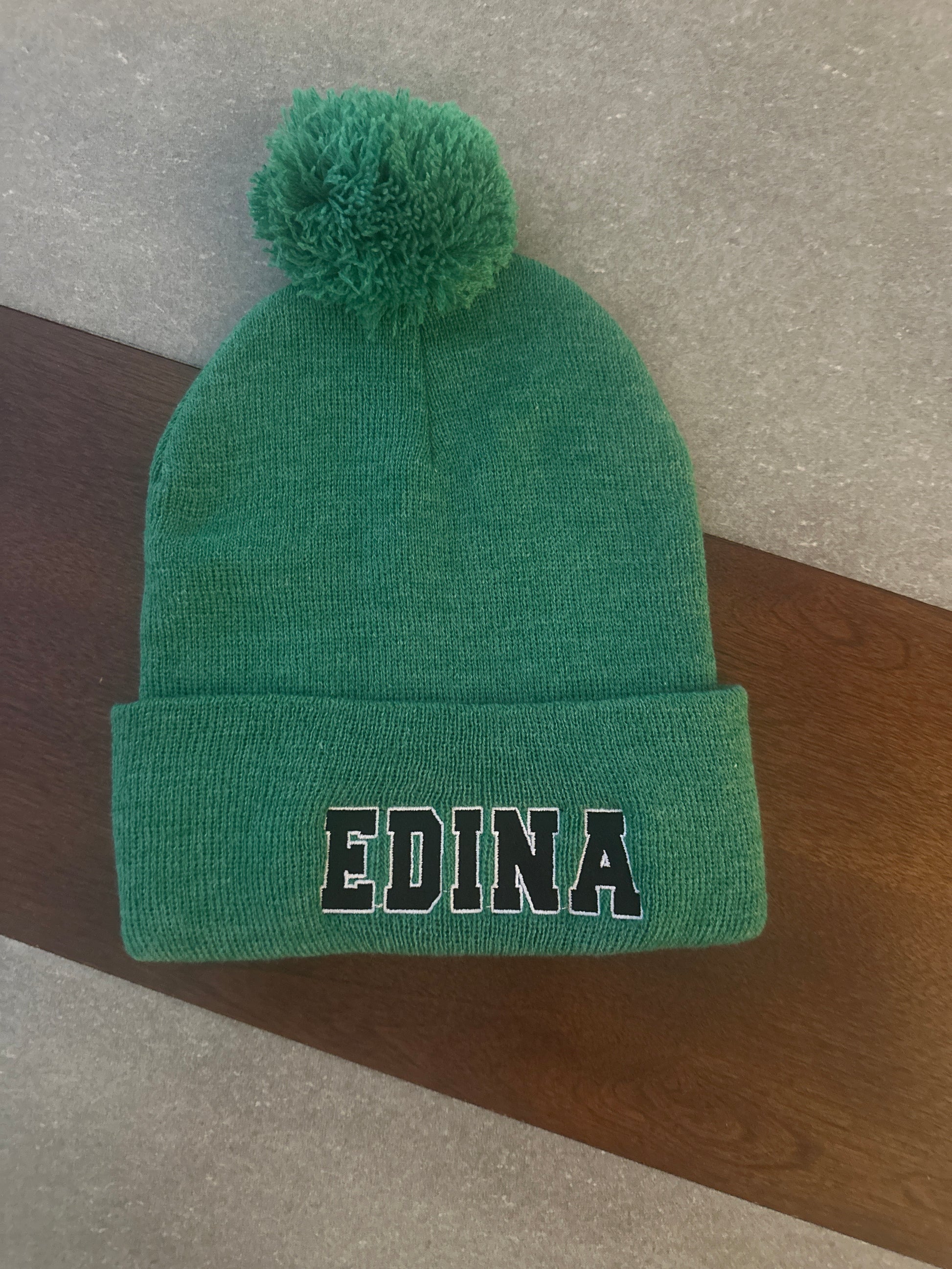 Green Pom hat embroidered Edina!